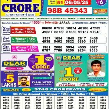 RESULT DEAR DASHER FRIDAY WEEKLY LOTTERY 09.05.2025