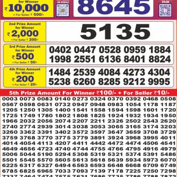 RESULT PUNJAB STATE DEAR 10 DIAMOND TUESDAY WEEKLY LOTTERY 29.04.2025