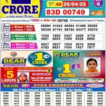 RESULT DEAR DONNER SATURDAY WEEKLY LOTTERY 26.04.2025