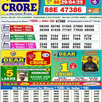 RESULT DEAR DASHER FRIDAY WEEKLY LOTTERY 25.04.2025