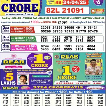 RESULT DEAR DANCER THURSDAY WEEKLY LOTTERY 24.04.2025