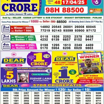 RESULT DEAR DANCER THURSDAY WEEKLY LOTTERY 17.04.2025