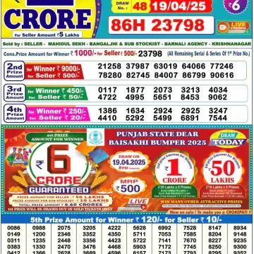 RESULT PUNJAB STATE DEAR 10 SILVER WEDNESDAY WEEKLY LOTTERY 16.04.2025