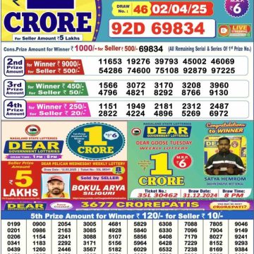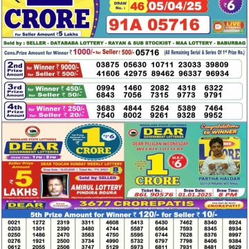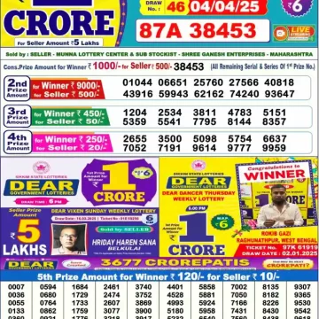 RESULT DEAR DASHER FRIDAY WEEKLY LOTTERY 04.04.2025