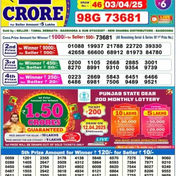 RESULT PUNJAB STATE DEAR 10 DIAMOND TUESDAY WEEKLY LOTTERY 01.04.2025