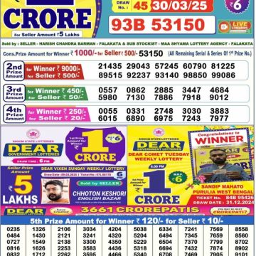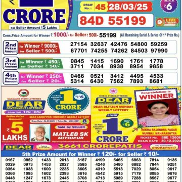 RESULT DEAR DASHER FRIDAY WEEKLY LOTTERY 28.03.2025