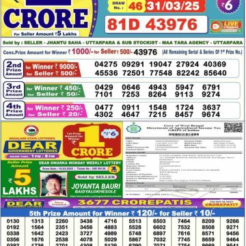 RESULT DEAR BLITZEN MONDAY WEEKLY LOTTERY 31.03.2025
