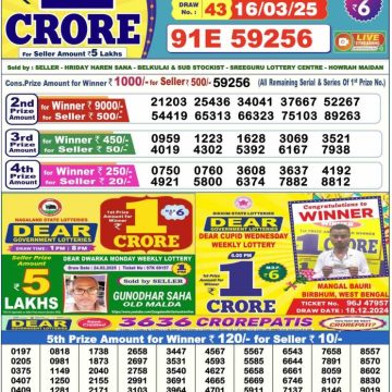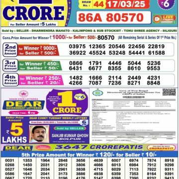 RESULT DEAR BLITZEN MONDAY WEEKLY LOTTERY 17.03.2025 Inbox