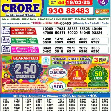 RESULT PUNJAB STATE DEAR 50 MONTHLY LOTTERY 18.03.2025