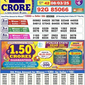 RESULT DEAR DASMER FRIDAY WEEKLY LOTTERY 07.03.2025