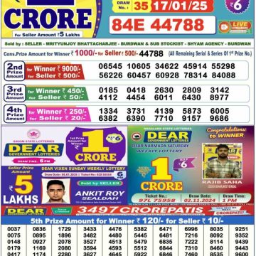 RESULT DEAR DANCER THURSDAY WEEKLY LOTTERY 16.01.2025