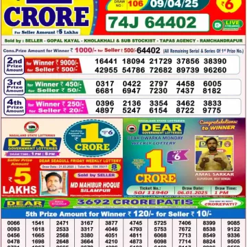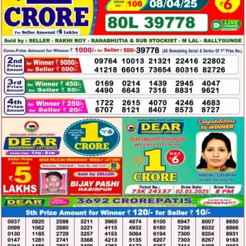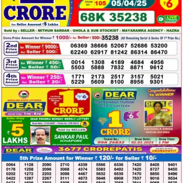 RESULT DEAR SANDIPER THURSDAY WEEKLY LOTTERY 10.04.2025