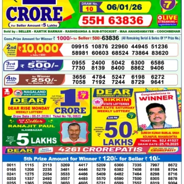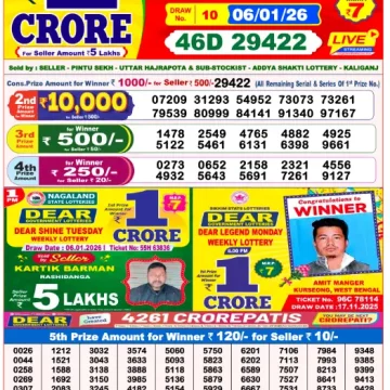RESULT DEAR SHINE TUESDAY WEEKLY LOTTERY 06.01.2026