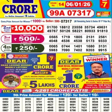 RESULT DEAR PRESTIGE TUESDAY WEEKLY LOTTERY 06.01.2026