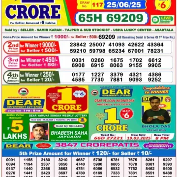 RESULT DEAR SUPER PERAL WEDNESDAY WEEKLY LOTTERY 25.06.2025