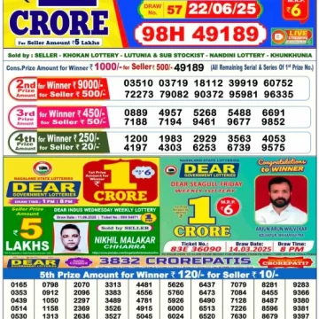 RESULT DEAR SUPER MERCURY SUNDAY WEEKLY LOTTERY 22.06.2025