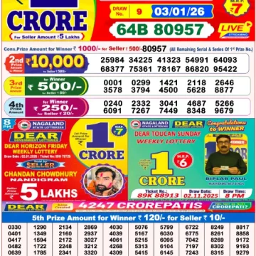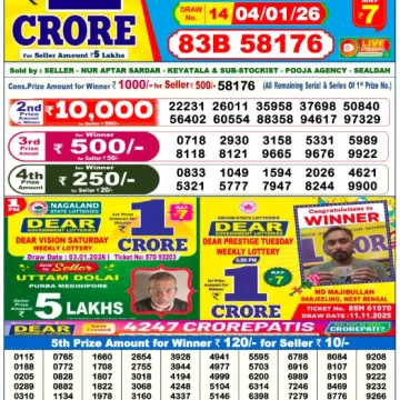 RESULT DEAR LUCKY SATURDAY WEEKLY LOTTERY 03.01.2026
