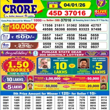 RESULT PUNJAB STATE DEAR 200 MONTHLY LOTTERY 03.01.2026