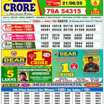 Dear Lottery Results Today – Lottery Sambad Today