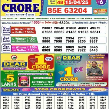 RESULT PUNJAB STATE DEAR 10 DIAMOND TUESDAY WEEKLY LOTTERY 15.04.2025