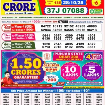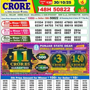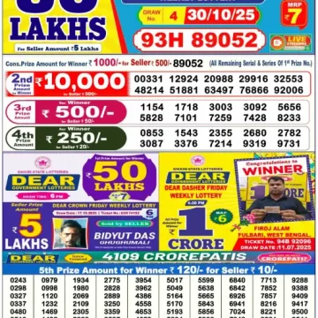 RESULT DEAR 50 CHIEF THURSDAY WEEKLY LOTTERY 30.10.2025