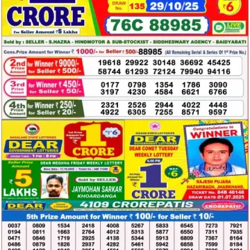Dear Lottery Results Today – Lottery Sambad Today