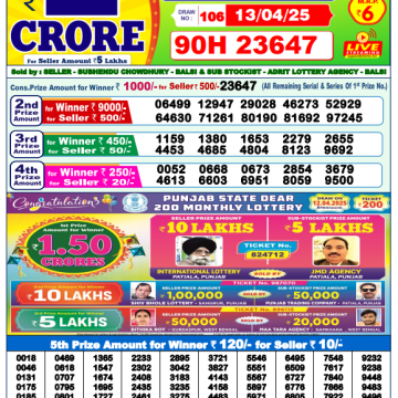 RESULT LABHLAXMI POWER SUNDAY WEEKLY LOTTERY 13.04.2025