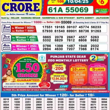 RESULT DEAR SUPER PLATINUM THURSDAY WEEKLY LOTTERY 10.04.2025