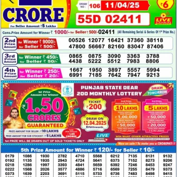 RESULT DEAR DASHER FRIDAY WEEKLY LOTTERY 11.04.2025