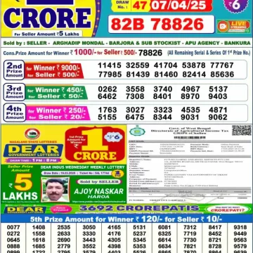 RESULT DEAR SUPER GOLD MONDAY WEEKLY LOTTERY 07.04.2025