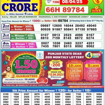 RESULT DEAR 10 FIRM MONDAY WEEKLY LOTTERY 07.04.2025