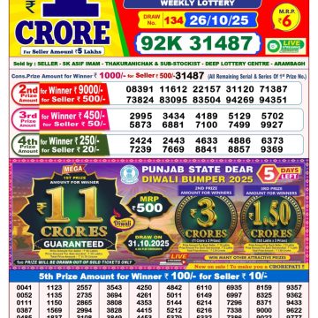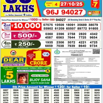 RESULT DEAR DWARKA MONDAY WEEKLY LOTTERY 27.10.2025