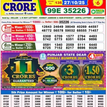 RESULT LABHLAXMI CHARM TUESDAY WEEKLY LOTTERY 28.10.2025