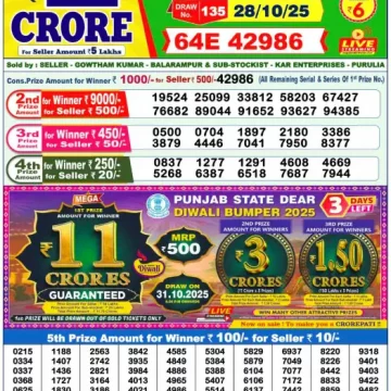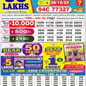 RESULT DEAR PRESTIGE TUESDAY WEEKLY LOTTERY 28.10.2025