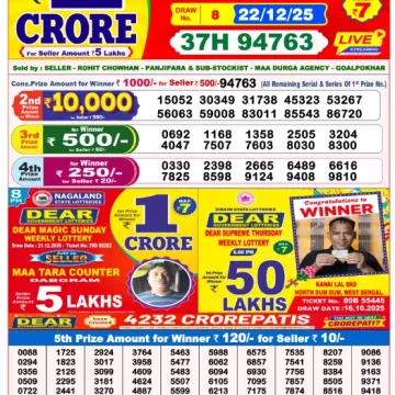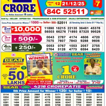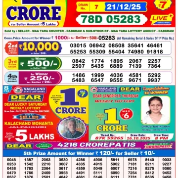 Dear Lottery Results Today – Lottery Sambad Today