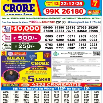 RESULT DEAR EMPIRE SUNDAY WEEKLY LOTTERY 21.12.2025
