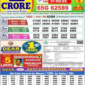RESULT DEAR SUPER MERCURY SUNDAY WEEKLY LOTTERY 30.03.2025