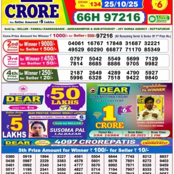 RESULT DEAR ELITE SATURDAY WEEKLY LOTTERY 25.10.2025