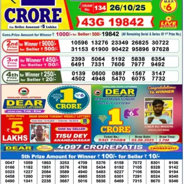 RESULT DEAR 50 RANGER SUNDAY WEEKLY LOTTERY 26.10.2025