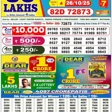 RESULT DEAR YAMUNA SUNDAY WEEKLY LOTTERY 26.10.2025