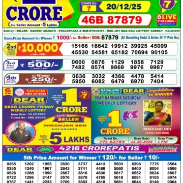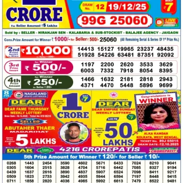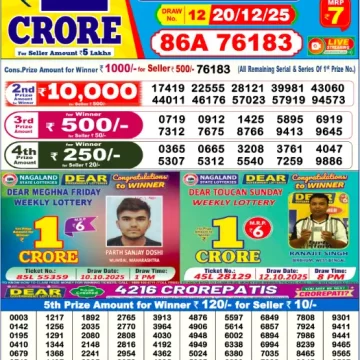 RESULT DEAR CROWN FRIDAY WEEKLY LOTTERY 19.12.2025