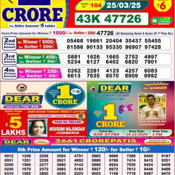 RESULT DEAR 10 HARD TUESDAY WEEKLY LOTTERY 25.03.2025