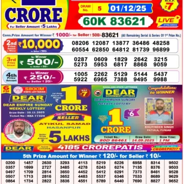 • RESULT DEAR SUPREME THURSDAY WEEKLY LOTTERY 04.12.2025RESULT DEAR SUPREME THURSDAY WEEKLY LOTTERY 04.12.2025