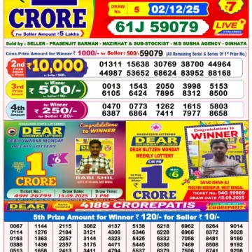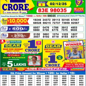 RESULT DEAR PRESTIGE TUESDAY WEEKLY LOTTERY 02.12.2025