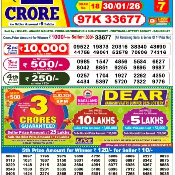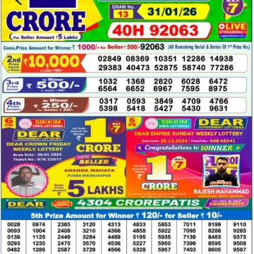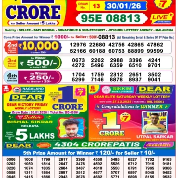 RESULT DEAR CROWN FRIDAY WEEKLY LOTTERY 30.01.2026