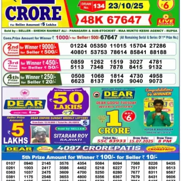 RESULT DEAR 50 CHIEF THURSDAY WEEKLY LOTTERY 23.10.2025