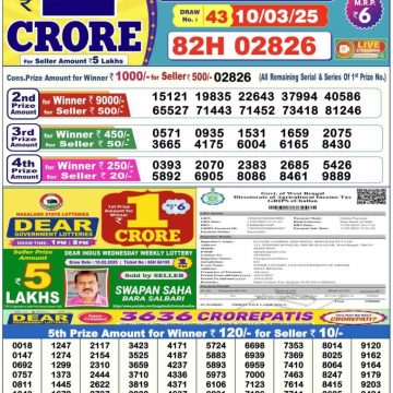 RESULT DEAR INDUS WEDNESDAY WEEKLY LOTTERY 12.03.2025