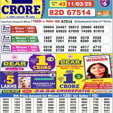 RESULT DEAR CUPID WEDNESDAY WEEKLY LOTTERY 12.03.2025