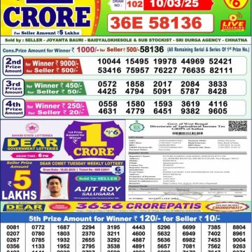 RESULT DEAR BLITZEN MONDAY WEEKLY LOTTERY 10.03.2025