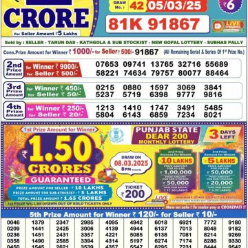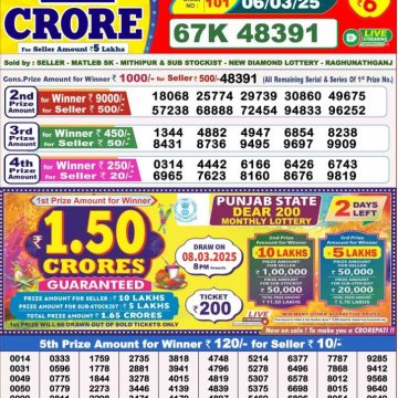 RESULT DEAR SUPER PLATINUM THURSDAY WEEKLY LOTTERY 06.03.2025